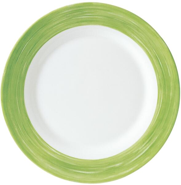 Az Arcoroc Brush 225 mm átmérőjű mélytányér opálüvegből készült. A tányér peremének zöld színe modern megjelenést kölcsönöz. Ideális mindennapi használatra és ünnepi alkalmakra is.