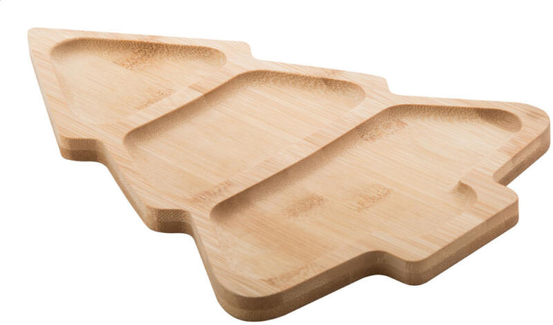 Karácsonyfa alakú, bambuszból készült kínáló tányér.